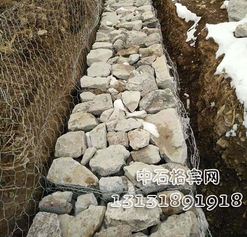 護坡格賓石籠的組裝:格賓籠的連接應平整、均勻,接頭連接整齊、堅固。螺旋連接線為與網(wǎng)箱相同材質的覆樹脂膜鋼絲。單元網(wǎng)箱間隔網(wǎng)與網(wǎng)身成90。相交。間隔網(wǎng)與網(wǎng)身的四處交角各雙股綁扎一道,交接處采用連結線一孔繞一圈呈螺旋狀穿孔絞繞連接。格賓籠綁扎時每隔15~20cm綁扎嵌固。中間進行八字拉結形成1m*1m較為規(guī)則的立方體格賓籠后沿施工線擺放。
